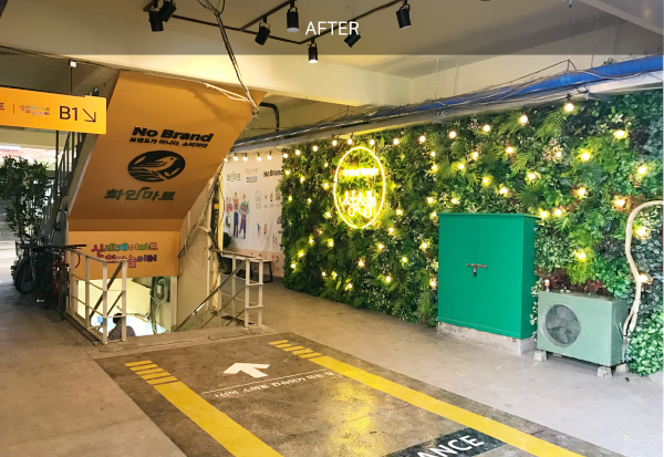 장을 보는 공간을 넘어 안성맞춤시장은 아이들과 함께 놀고 다양한 연령층이 함께 하는 공간으로 바뀌었습니다. 마트의 초입구 공간을 포토존으로 디자인하여 기존에 무심코 지나갔던 공간을 '포토존' 으로 바꾸었습니다. 게다가 통일감있는 파사드, 사인물들을 고객들로 하여금 '아! 여기구나!' 할 수 있도록 디자인하여 배치하고 설계하였습니다. 밤에도 시장의 활기찬 분위기를 유지하기 위해 거리 중앙에 전구를 설치하여 분위기있고 운치있는 공간으로 변신하였습니다.