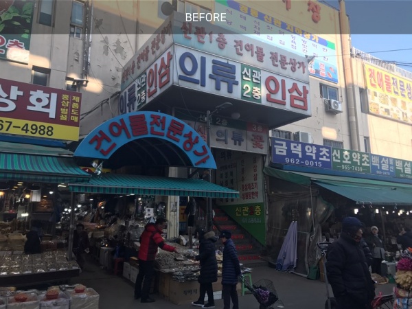 경동시장은 1960년대 생겨나서 현재까지 아주 오래된 역사를 지니고 있는 시장입니다. 한약재를 중심으로 각종 수산물과 청과물, 채소 등을 판매하는 청량리의 경동시장! 공실률 60%에 다다르는 신관2층 전체의 구성을 새롭게 구성해 이전과 다른 새로운 모습으로 5번째 상생스토어의 주인공이 되었습니다! 빈 매장들을 철거하고 인삼 패션 등 29개의 점포를 전면 깔끔하게 배치하고 전통시장의 맛과 멋이 함께 공존할 수 있도록 카페숲, 동대문구 작은 도서관, 어린이 희망놀이터, 고객쉼터를 만들어 손님들이 시장에서 더 다채로운 문화생활을 즐길 수 있도록 제공하였습니다. 또, 전통시장과 청년창업을 함께 활성 할 수 있도록 ' 청년몰 ' 공간을 갖춰 다양한 문화체험 공간으로 업그레이드 하였습니다!